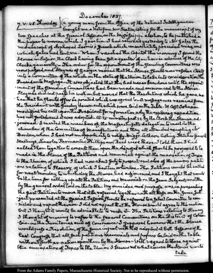 View full, authoritative transcriptions with page images of the diaries at John Quincy Adams Digital Diary part of the Primary Source Cooperative at the MHS.