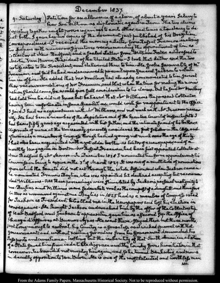 View full, authoritative transcriptions with page images of the diaries at John Quincy Adams Digital Diary part of the Primary Source Cooperative at the MHS.