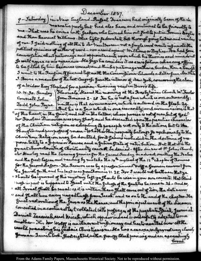 View full, authoritative transcriptions with page images of the diaries at John Quincy Adams Digital Diary part of the Primary Source Cooperative at the MHS.