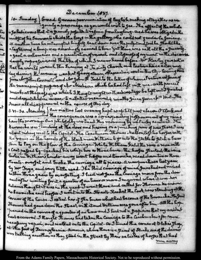 View full, authoritative transcriptions with page images of the diaries at John Quincy Adams Digital Diary part of the Primary Source Cooperative at the MHS.