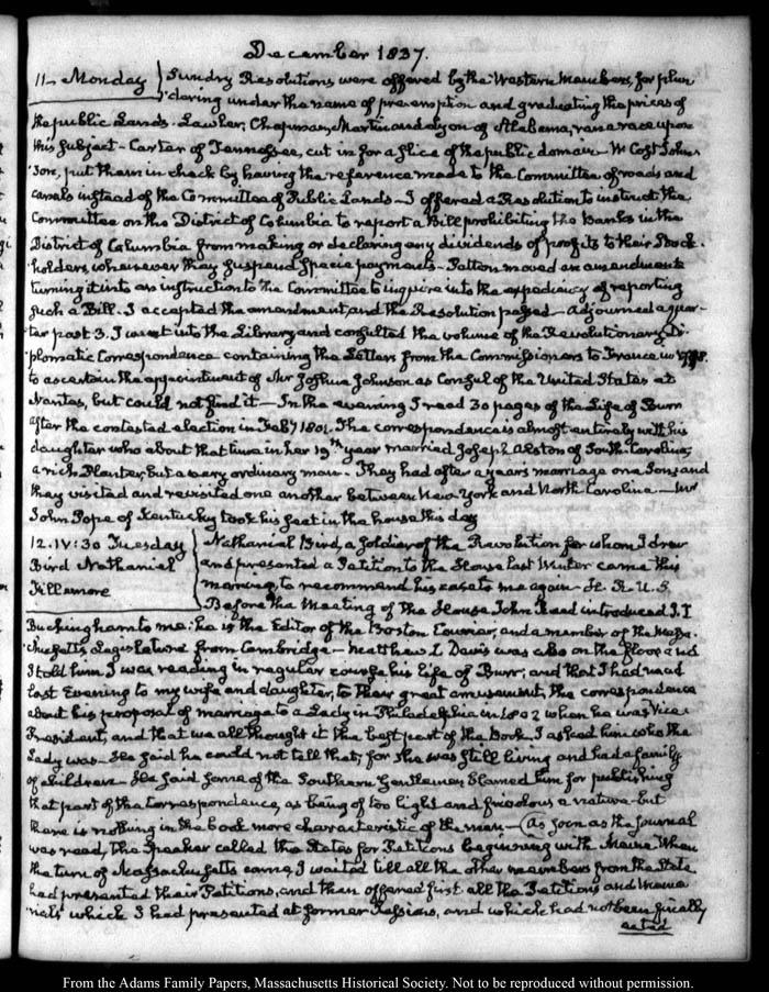 View full, authoritative transcriptions with page images of the diaries at John Quincy Adams Digital Diary part of the Primary Source Cooperative at the MHS.
