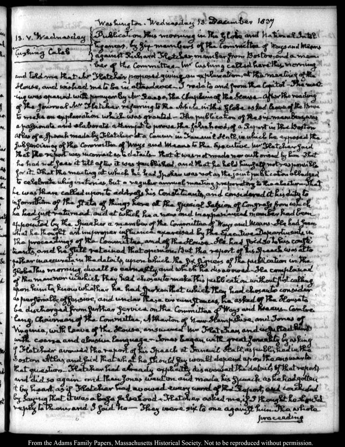View full, authoritative transcriptions with page images of the diaries at John Quincy Adams Digital Diary part of the Primary Source Cooperative at the MHS.