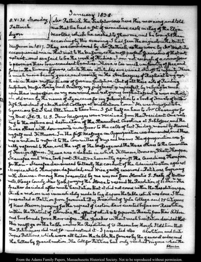 View full, authoritative transcriptions with page images of the diaries at John Quincy Adams Digital Diary part of the Primary Source Cooperative at the MHS.