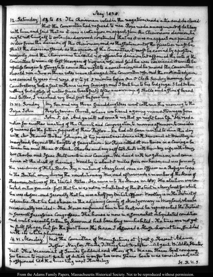 View full, authoritative transcriptions with page images of the diaries at John Quincy Adams Digital Diary part of the Primary Source Cooperative at the MHS.