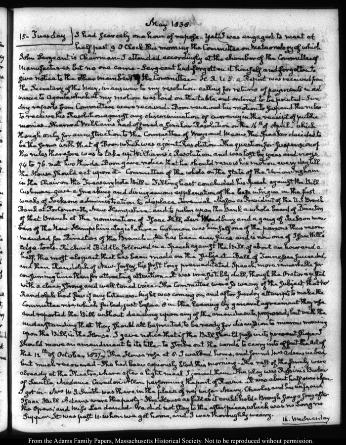 View full, authoritative transcriptions with page images of the diaries at John Quincy Adams Digital Diary part of the Primary Source Cooperative at the MHS.