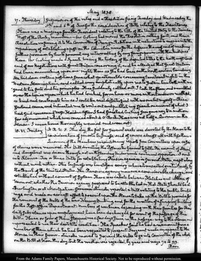 John Quincy Adams diary 33, "Diary in Abridgment," 1 December 1821 - 31 December 1838 (with gaps), page 488