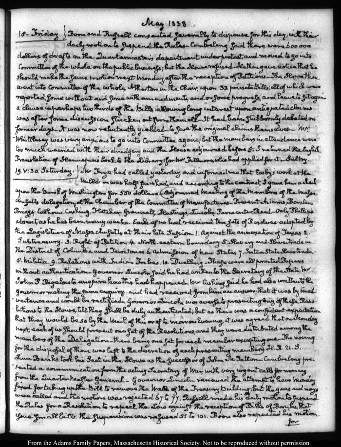 View full, authoritative transcriptions with page images of the diaries at John Quincy Adams Digital Diary part of the Primary Source Cooperative at the MHS.
