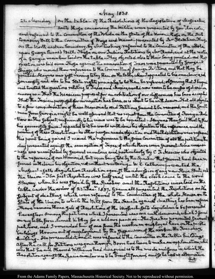 View full, authoritative transcriptions with page images of the diaries at John Quincy Adams Digital Diary part of the Primary Source Cooperative at the MHS.