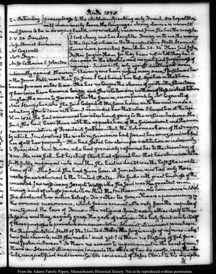 View full, authoritative transcriptions with page images of the diaries at John Quincy Adams Digital Diary part of the Primary Source Cooperative at the MHS.