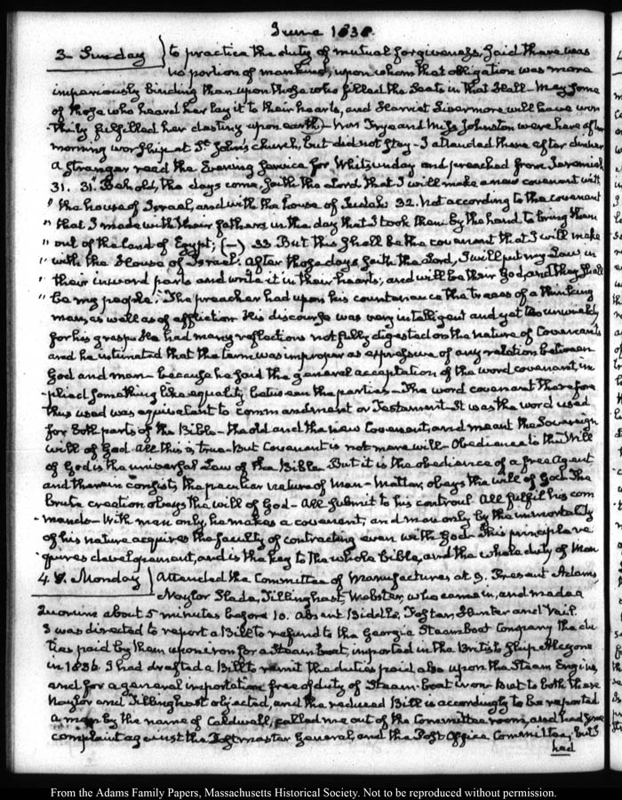 View full, authoritative transcriptions with page images of the diaries at John Quincy Adams Digital Diary part of the Primary Source Cooperative at the MHS.