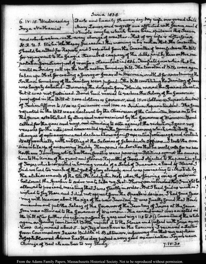 View full, authoritative transcriptions with page images of the diaries at John Quincy Adams Digital Diary part of the Primary Source Cooperative at the MHS.