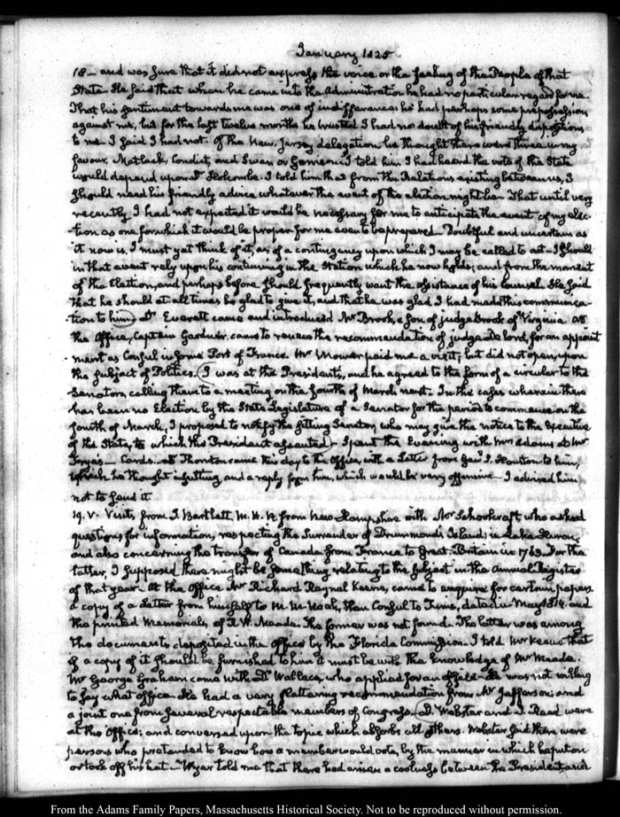 View full, authoritative transcriptions with page images of the diaries at John Quincy Adams Digital Diary part of the Primary Source Cooperative at the MHS.