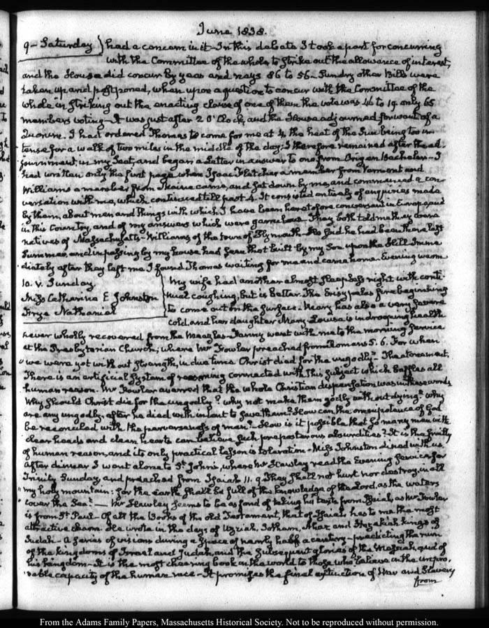 View full, authoritative transcriptions with page images of the diaries at John Quincy Adams Digital Diary part of the Primary Source Cooperative at the MHS.