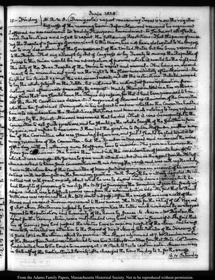 View full, authoritative transcriptions with page images of the diaries at John Quincy Adams Digital Diary part of the Primary Source Cooperative at the MHS.