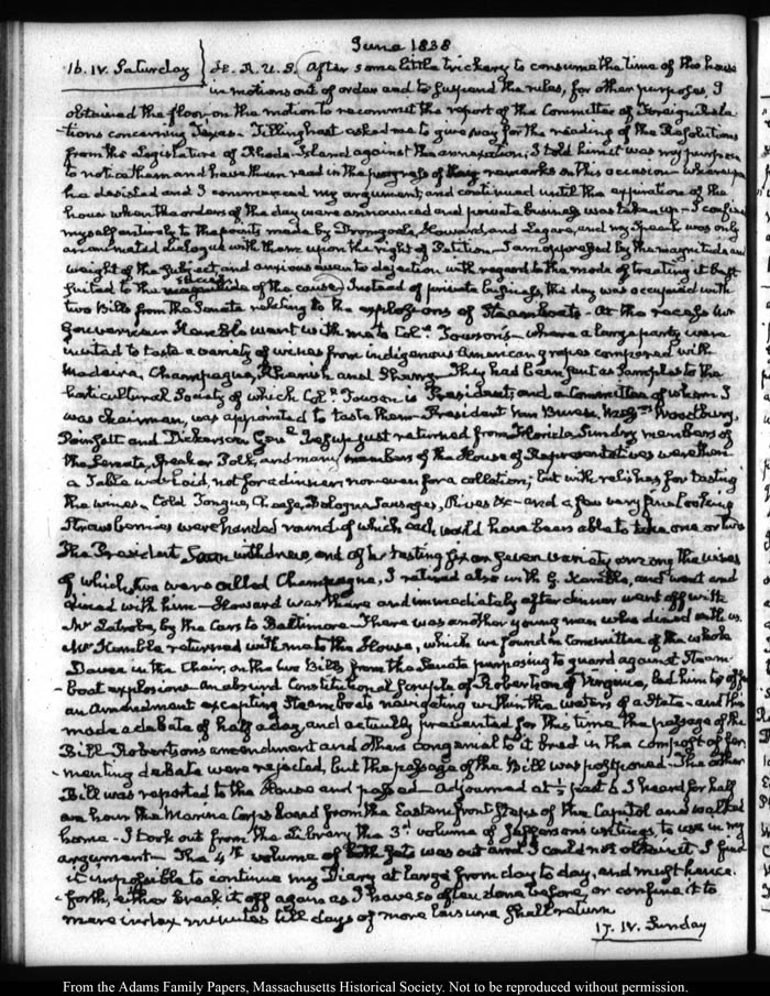 View full, authoritative transcriptions with page images of the diaries at John Quincy Adams Digital Diary part of the Primary Source Cooperative at the MHS.