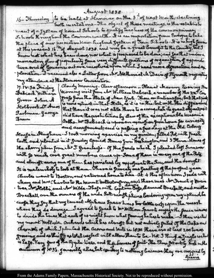 View full, authoritative transcriptions with page images of the diaries at John Quincy Adams Digital Diary part of the Primary Source Cooperative at the MHS.