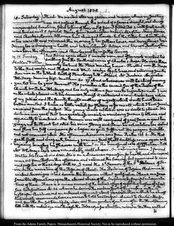 View full, authoritative transcriptions with page images of the diaries at John Quincy Adams Digital Diary part of the Primary Source Cooperative at the MHS.