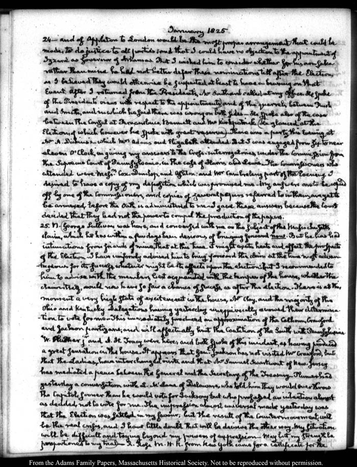 View full, authoritative transcriptions with page images of the diaries at John Quincy Adams Digital Diary part of the Primary Source Cooperative at the MHS.
