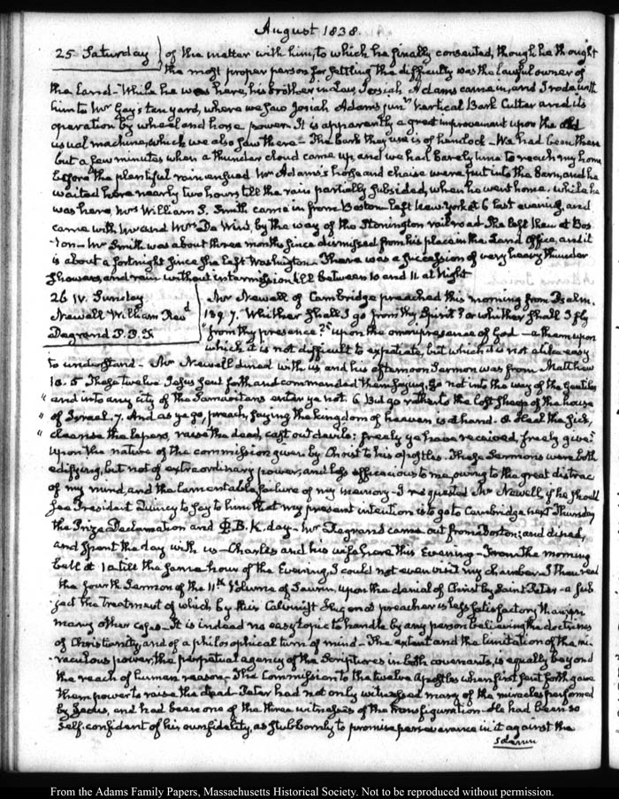 View full, authoritative transcriptions with page images of the diaries at John Quincy Adams Digital Diary part of the Primary Source Cooperative at the MHS.