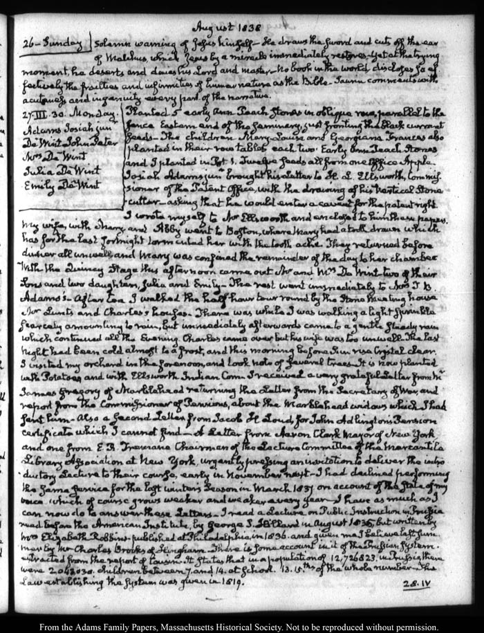 View full, authoritative transcriptions with page images of the diaries at John Quincy Adams Digital Diary part of the Primary Source Cooperative at the MHS.