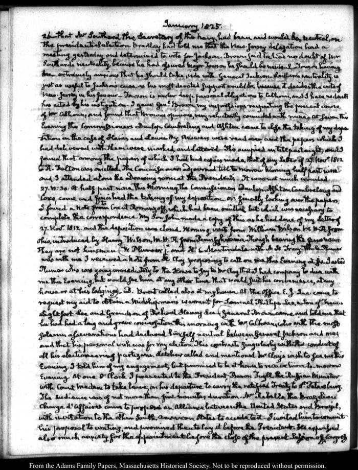 View full, authoritative transcriptions with page images of the diaries at John Quincy Adams Digital Diary part of the Primary Source Cooperative at the MHS.
