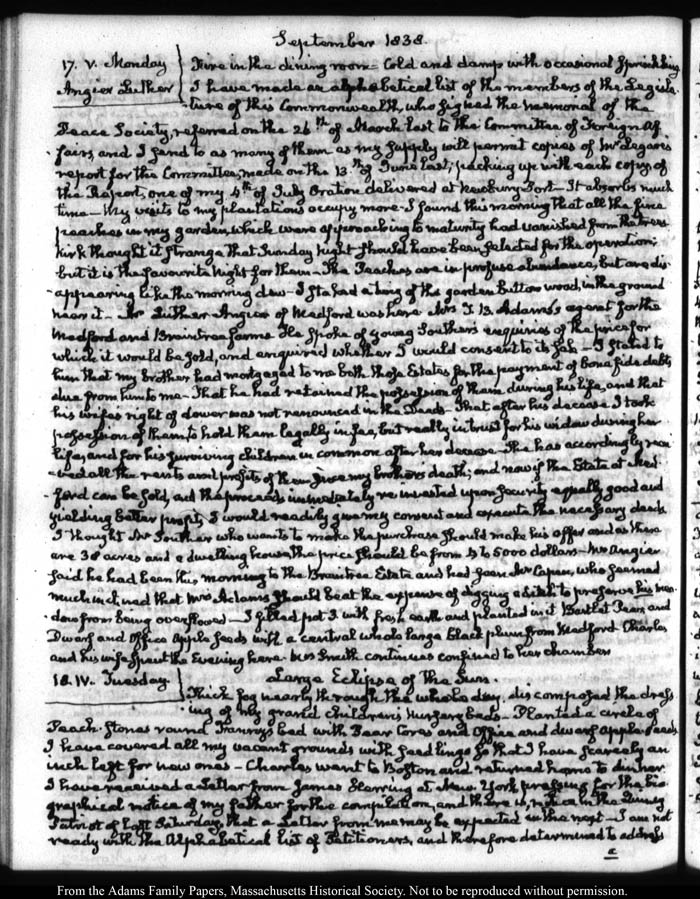 This is our legacy JQA diaries website and allows researchers to view the physical diaries page-by-page.