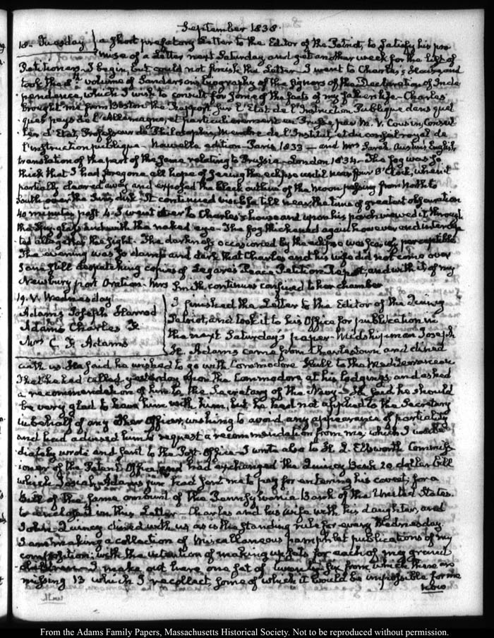 View full, authoritative transcriptions with page images of the diaries at John Quincy Adams Digital Diary part of the Primary Source Cooperative at the MHS.