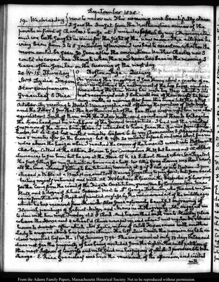 View full, authoritative transcriptions with page images of the diaries at John Quincy Adams Digital Diary part of the Primary Source Cooperative at the MHS.