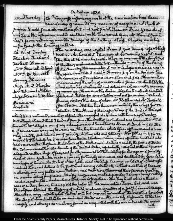 View full, authoritative transcriptions with page images of the diaries at John Quincy Adams Digital Diary part of the Primary Source Cooperative at the MHS.