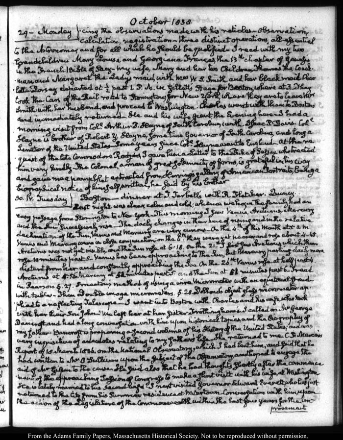 View full, authoritative transcriptions with page images of the diaries at John Quincy Adams Digital Diary part of the Primary Source Cooperative at the MHS.