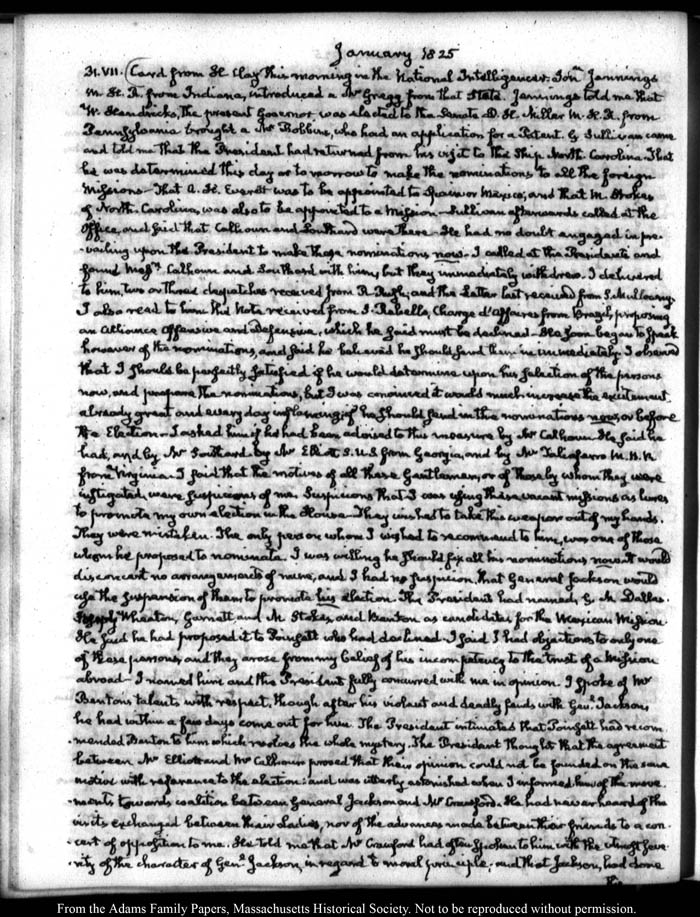 View full, authoritative transcriptions with page images of the diaries at John Quincy Adams Digital Diary part of the Primary Source Cooperative at the MHS.