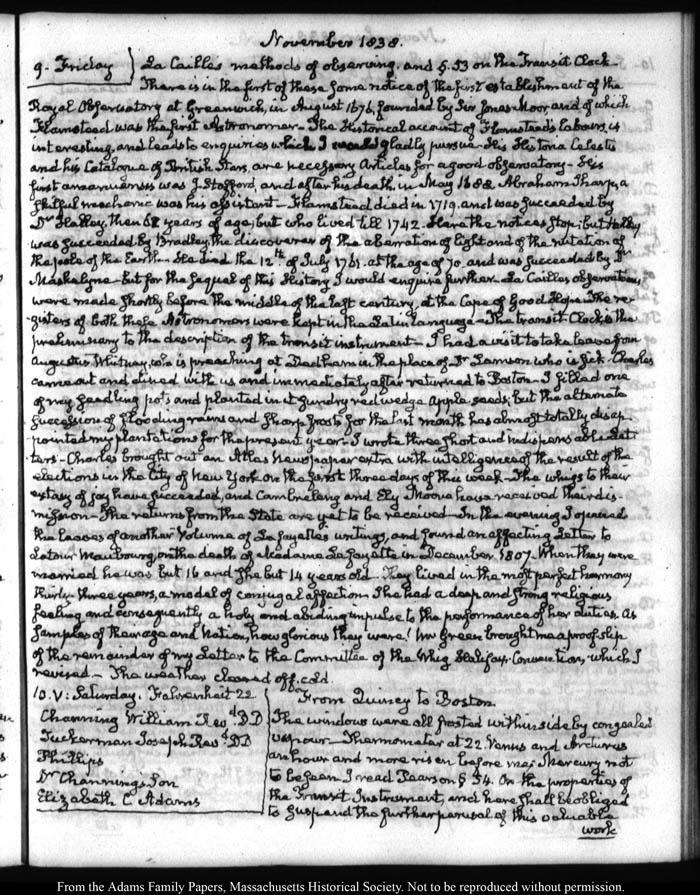 View full, authoritative transcriptions with page images of the diaries at John Quincy Adams Digital Diary part of the Primary Source Cooperative at the MHS.