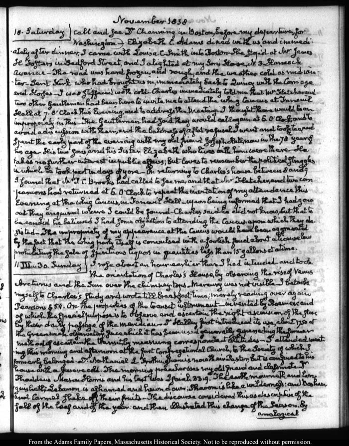 View full, authoritative transcriptions with page images of the diaries at John Quincy Adams Digital Diary part of the Primary Source Cooperative at the MHS.