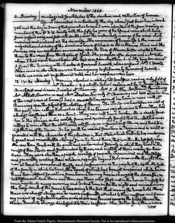 View full, authoritative transcriptions with page images of the diaries at John Quincy Adams Digital Diary part of the Primary Source Cooperative at the MHS.