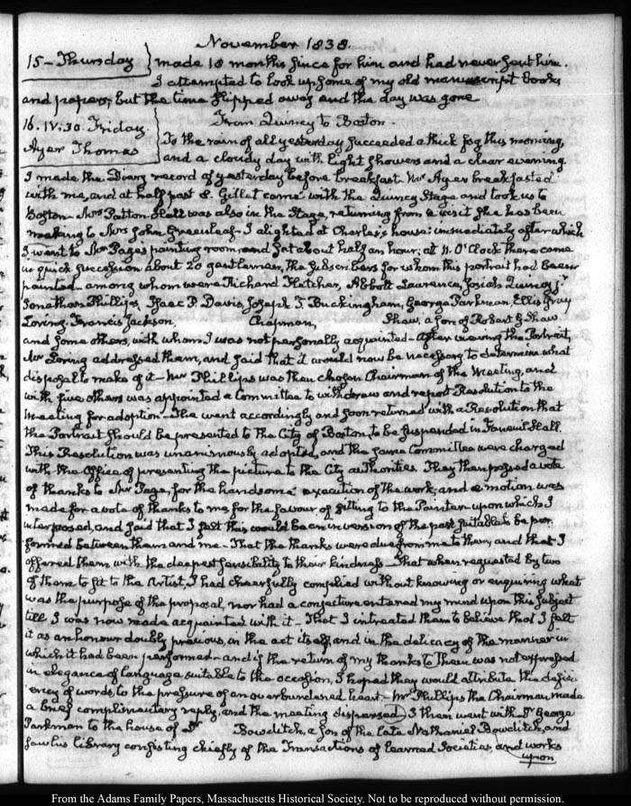 View full, authoritative transcriptions with page images of the diaries at John Quincy Adams Digital Diary part of the Primary Source Cooperative at the MHS.