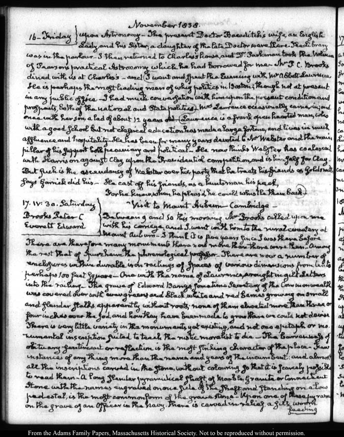 View full, authoritative transcriptions with page images of the diaries at John Quincy Adams Digital Diary part of the Primary Source Cooperative at the MHS.