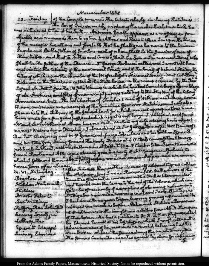 View full, authoritative transcriptions with page images of the diaries at John Quincy Adams Digital Diary part of the Primary Source Cooperative at the MHS.