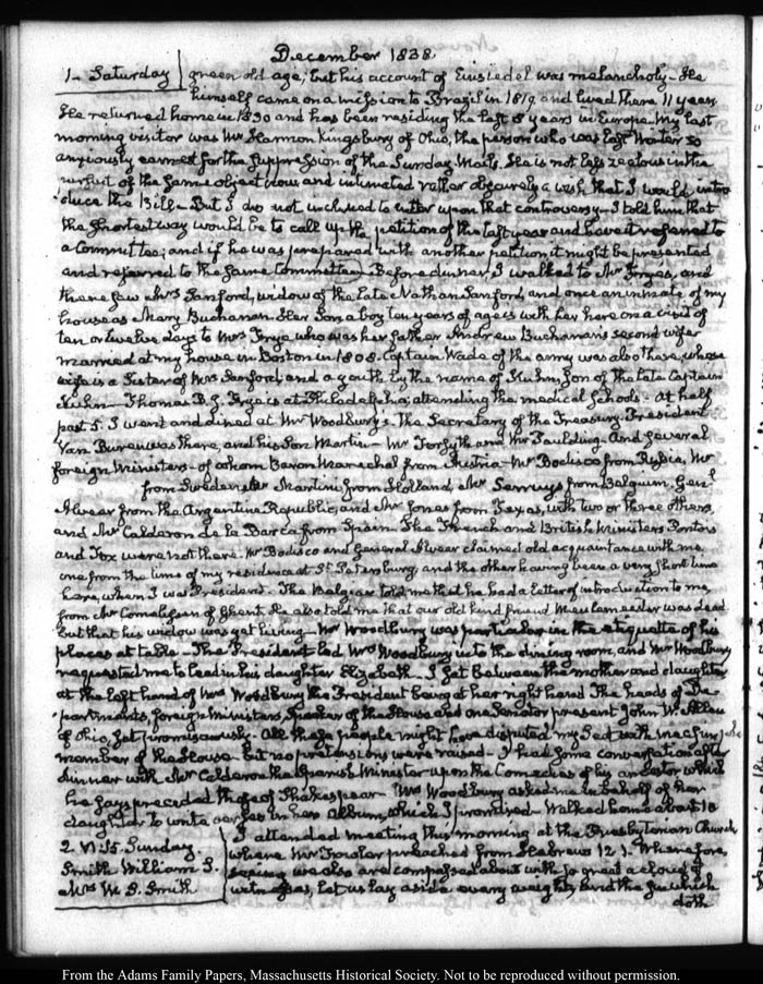 View full, authoritative transcriptions with page images of the diaries at John Quincy Adams Digital Diary part of the Primary Source Cooperative at the MHS.