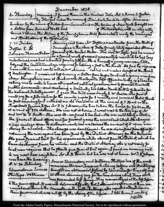 View full, authoritative transcriptions with page images of the diaries at John Quincy Adams Digital Diary part of the Primary Source Cooperative at the MHS.