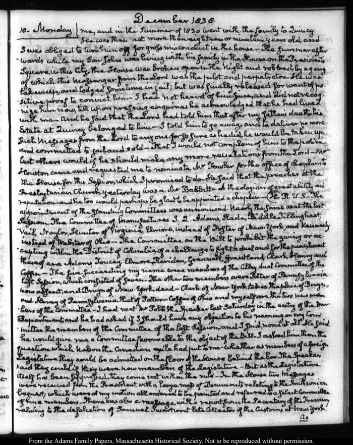 View full, authoritative transcriptions with page images of the diaries at John Quincy Adams Digital Diary part of the Primary Source Cooperative at the MHS.