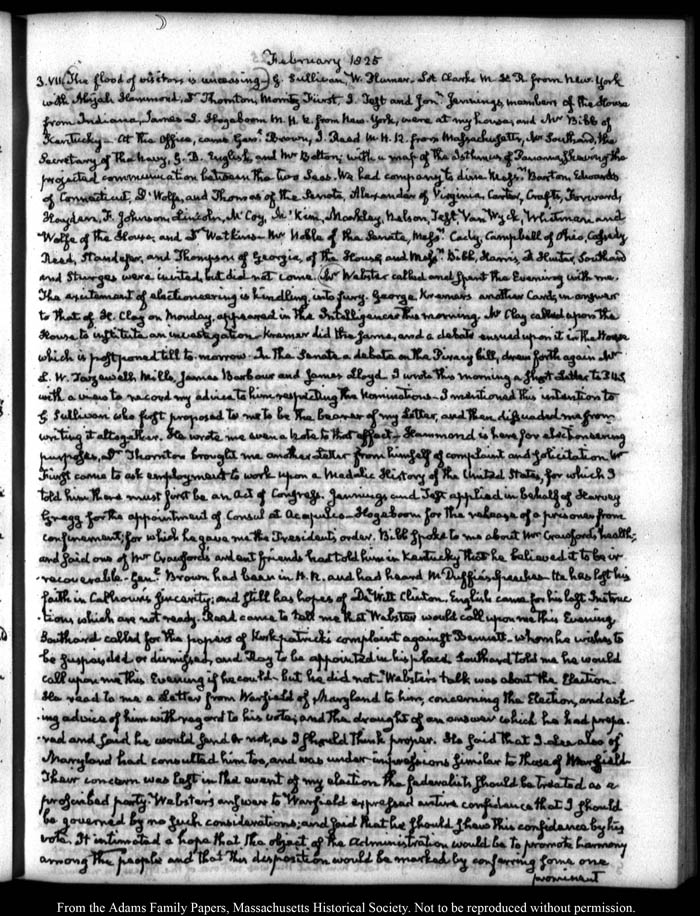 View full, authoritative transcriptions with page images of the diaries at John Quincy Adams Digital Diary part of the Primary Source Cooperative at the MHS.