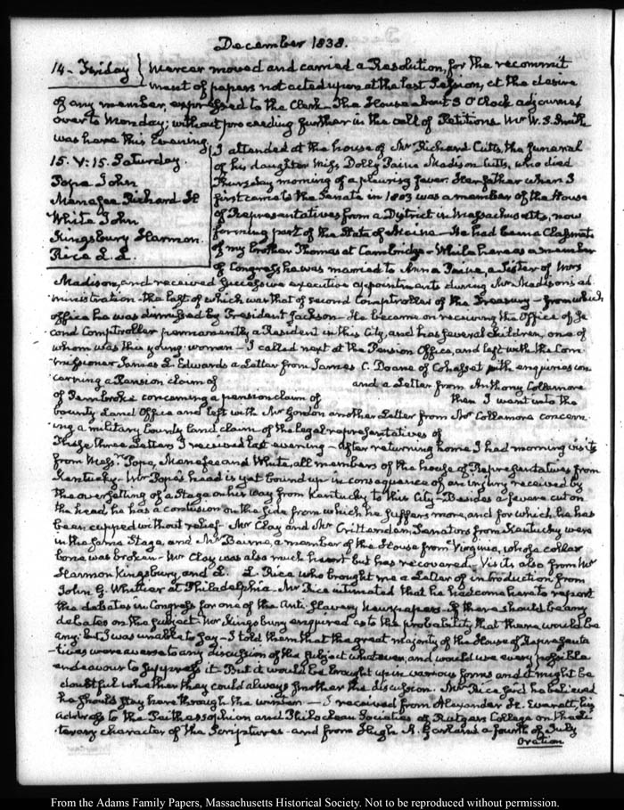 View full, authoritative transcriptions with page images of the diaries at John Quincy Adams Digital Diary part of the Primary Source Cooperative at the MHS.