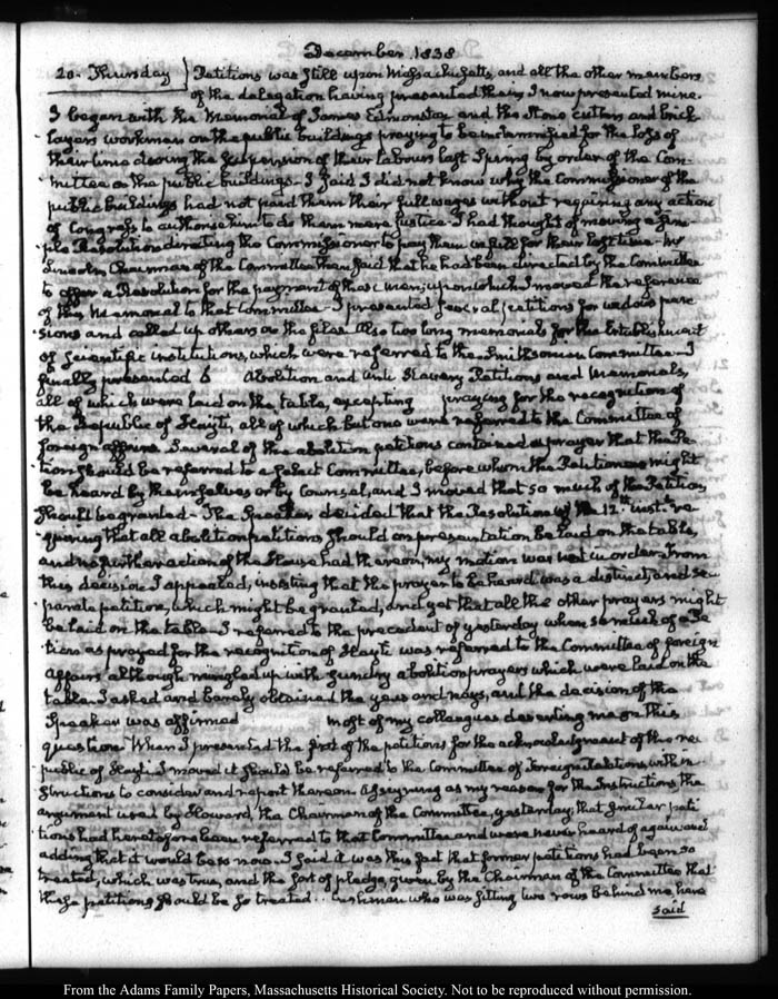 View full, authoritative transcriptions with page images of the diaries at John Quincy Adams Digital Diary part of the Primary Source Cooperative at the MHS.