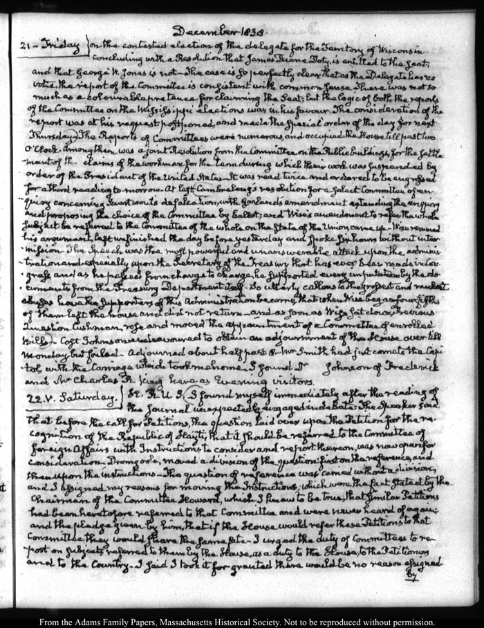 John Quincy Adams diary 33, "Diary in Abridgment," 1 December 1821 - 31 December 1838 (with gaps), page 699