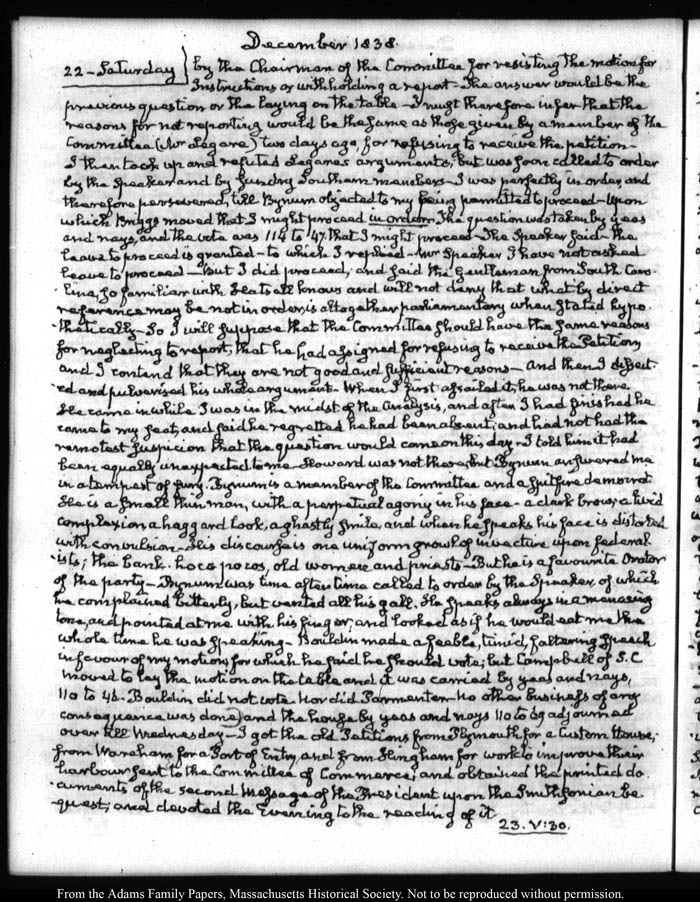 John Quincy Adams diary 33, "Diary in Abridgment," 1 December 1821 - 31 December 1838 (with gaps), page 700