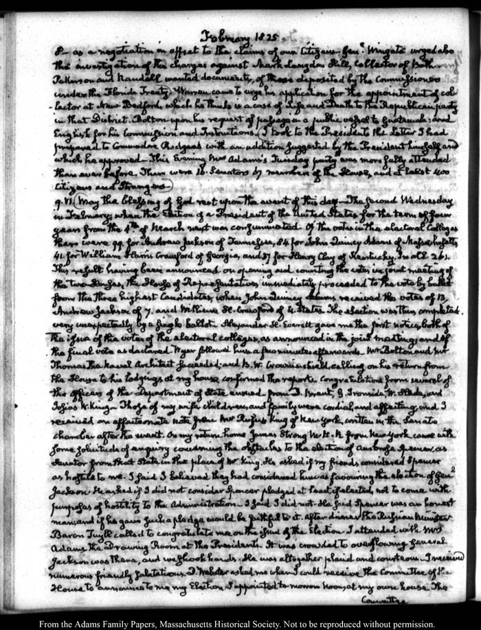 View full, authoritative transcriptions with page images of the diaries at John Quincy Adams Digital Diary part of the Primary Source Cooperative at the MHS.