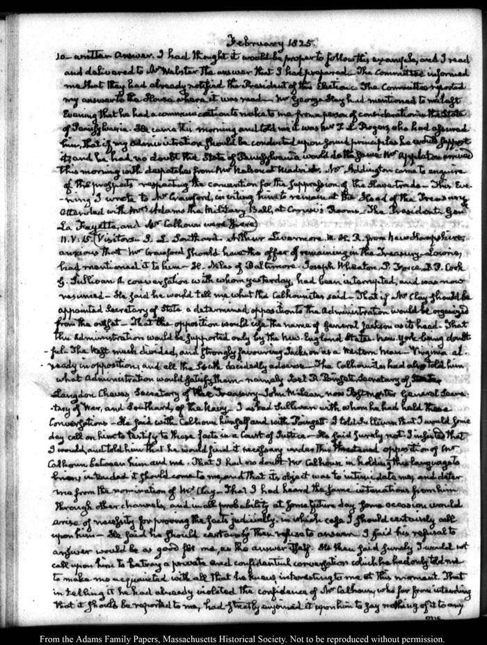 View full, authoritative transcriptions with page images of the diaries at John Quincy Adams Digital Diary part of the Primary Source Cooperative at the MHS.