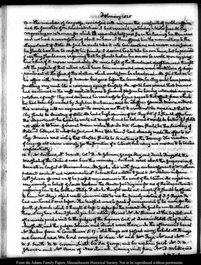 View full, authoritative transcriptions with page images of the diaries at John Quincy Adams Digital Diary part of the Primary Source Cooperative at the MHS.