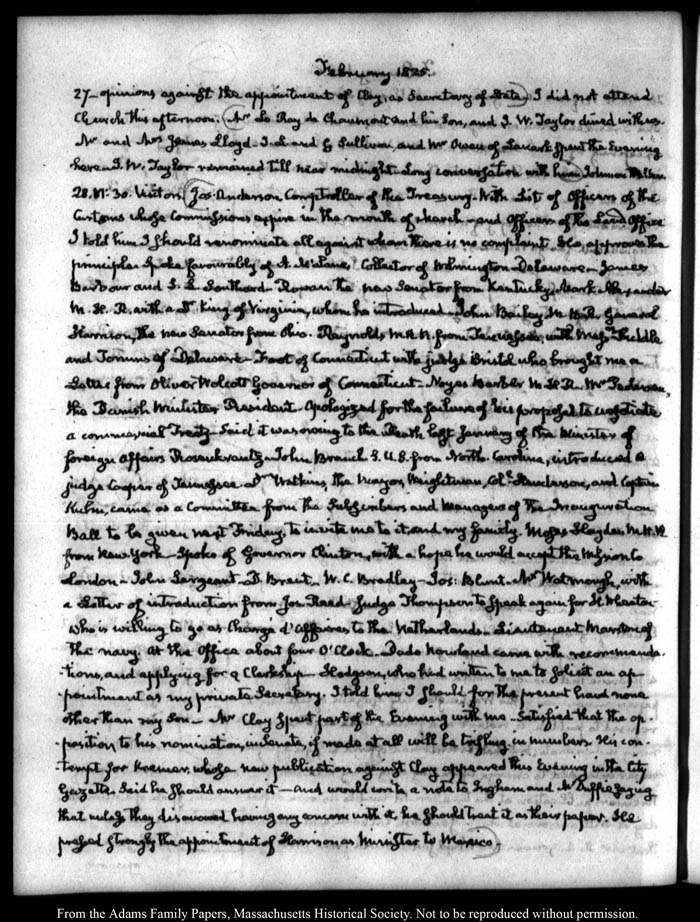 View full, authoritative transcriptions with page images of the diaries at John Quincy Adams Digital Diary part of the Primary Source Cooperative at the MHS.
