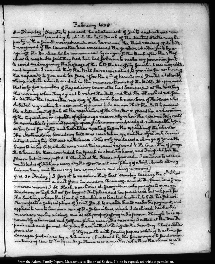 View full, authoritative transcriptions with page images of the diaries at John Quincy Adams Digital Diary part of the Primary Source Cooperative at the MHS.